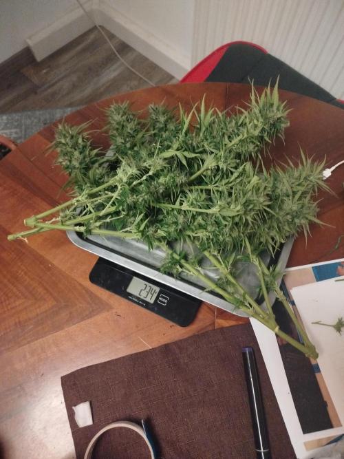 GermanGrow182 Die letzte Woche war der Hass. Da Larry die dicksten Blüten hatte, habe ich geerntet, als die zweite Schimmelstelle kam. 234g sind gut👍 Jetzt hängen sie.