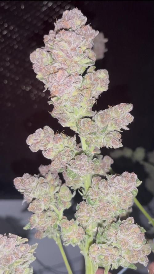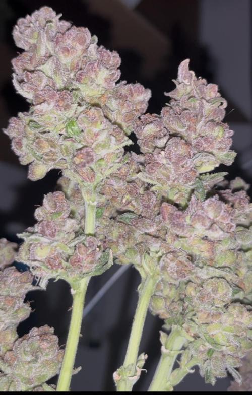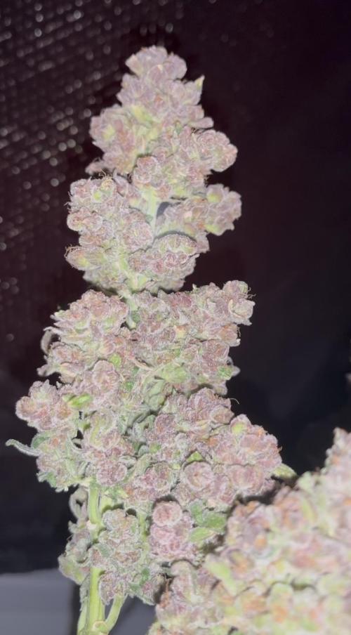 Rangaku Lil gelato really coming on now , showing some nice pink and purple colours and a beautiful sweet smell . Bit more defol required for this one but well worth the sticky fingers . Same same next week