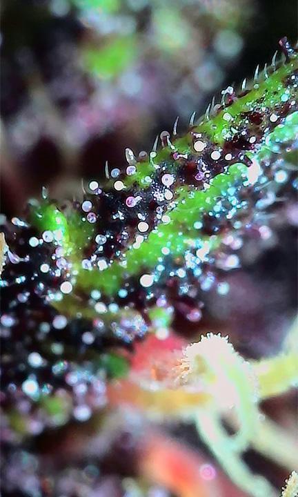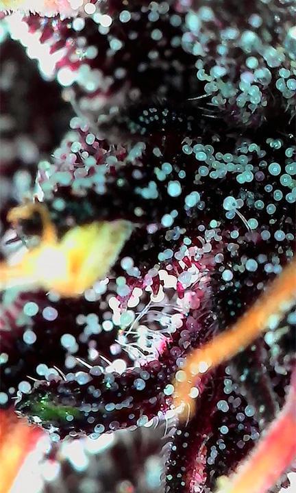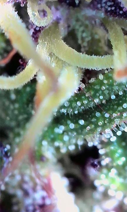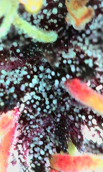 Photos are from today at noon. Sorry for some shaky photos. At least one has a good shot of the trichomes from the side. Just waiting for the pistils to cooperate. They are still a little yellow. Could harvest today and would be happy. Might feed once more! If not going to flush with Sledgehammer and then water. Then nothing until harvest. They can live off the rain.