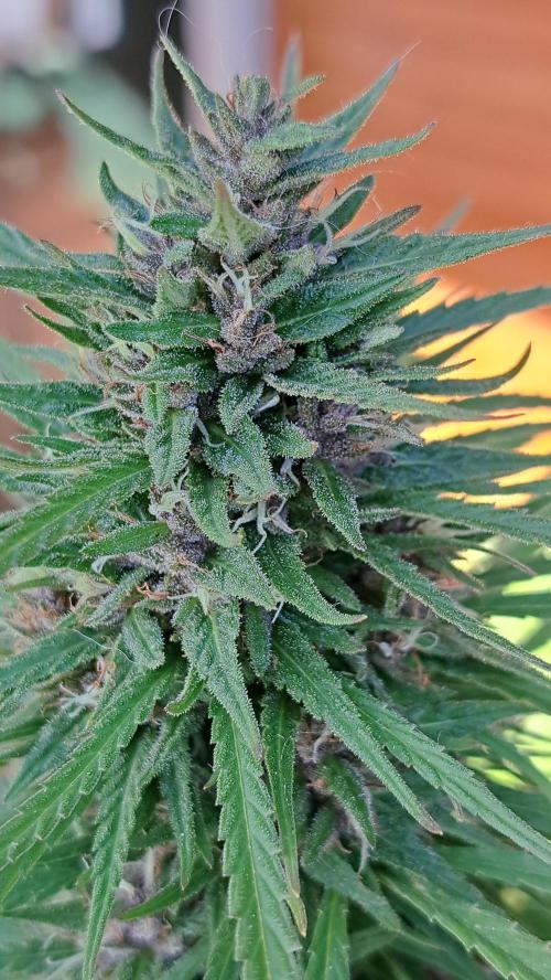 lowrydr Lots of rain last week and temps dropped. Took a few tops from one plant due to PM. Seems the purpler plant is more susceptible. No PM on the other plants. Sprayed with a hydrogen peroxide and water mix.