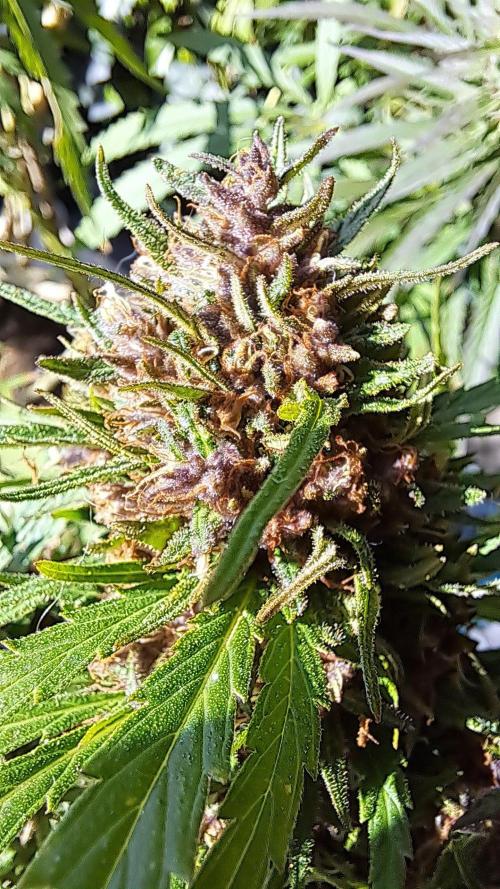 lowrydr Tons of sun this week. Yellow is starting to progress. Took out some minor branches and leaves from under canopy. No change in nutrients. Continue to spray with neem+baking soda to combat powdery mildew. No signs of it now. Buds are evenly spaced and good airflow with a fan at night.