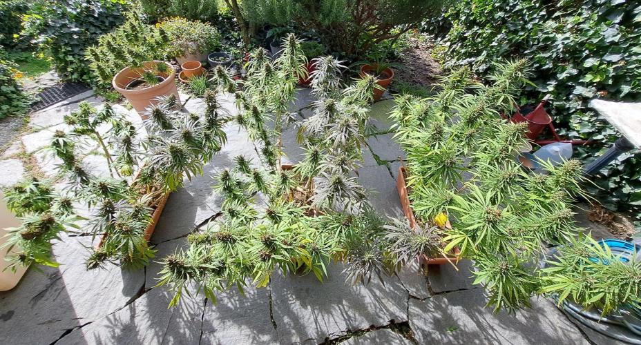 lowrydr Supercropped some branches to LST the taller ones to flatten out. I'd prefer to keep the low profile (lowrydr is my name) to stay stealth. Finished bud igniter, now starting into Big Bud stage. Some lowers yellowing but maybe due to blocked light.l from dense uppers. Only one plant like this. My single plant (Durban poison) still has mottled looking leaves even after calmag and ph lowering but whatever. Still flowering nicely. Not worried. All the others look super healthy.