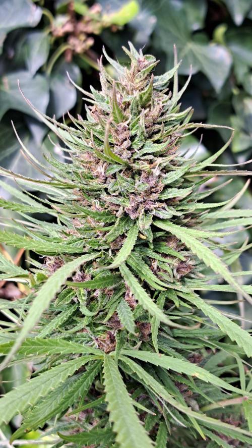 lowrydr Temps dropped and more rain. Buds are getting frosty but still mostly clear. Took off some tops with powdery mildew, mostly on one plant. Treating with a spray of 3% hydrogen peroxide diluted 1:20. Same feeding schedule (Big Buds phase).