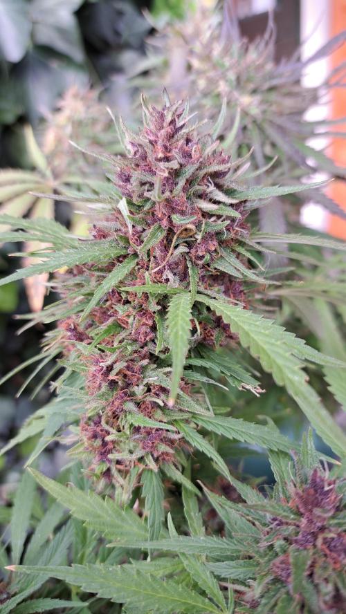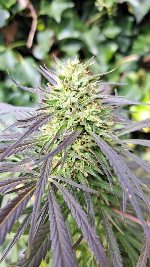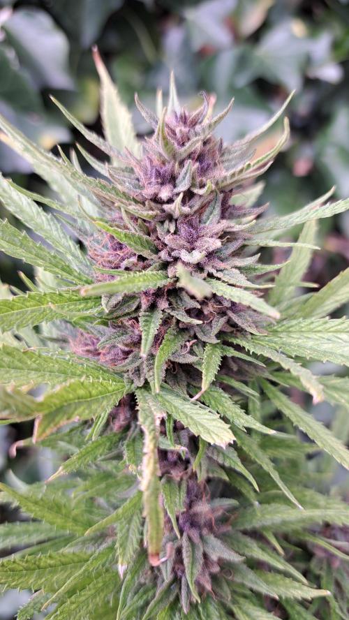 lowrydr Lots of rain last week and temps dropped. Took a few tops from one plant due to PM. Seems the purpler plant is more susceptible. No PM on the other plants. Sprayed with a hydrogen peroxide and water mix.