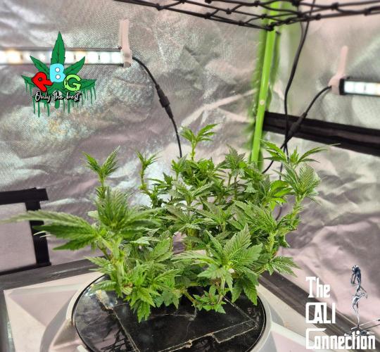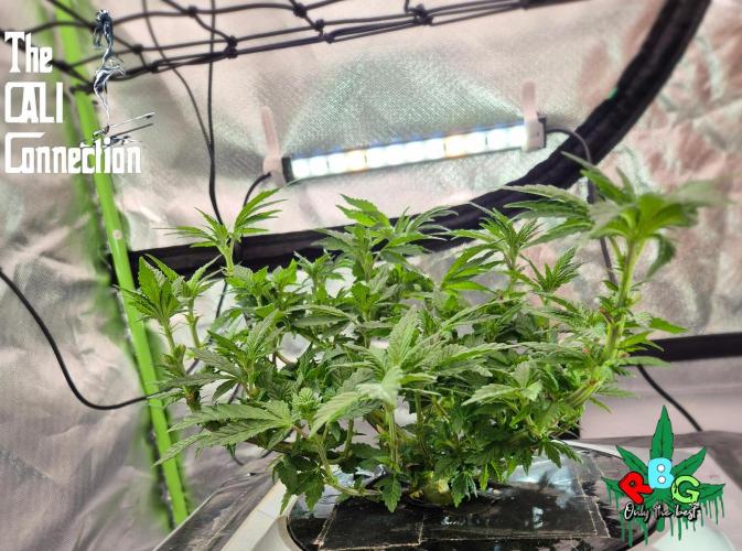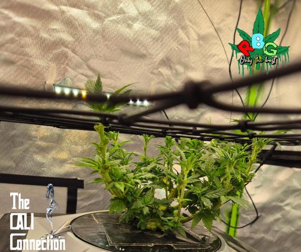 RBG LA is doing lovely, she's was originally the tallest but after folding her like a lawn chair after a big day on the beers her upward growth has slowed right down and she's starting to push outwards like I was anticipating. LA punch is an unreleased genetic from Cali connection. I suggest if you top her to top her once. Relax on the defoilation and let her grow out. She is quiet compact and wants to stay together so you need to try and be forceful to get your way but do be careful. Doesn't like stress in the sense of defoilation and topping early on but handles high PH, high EC and high temperatures so far but obviously not for long otherwise you can seriously stunt your ladies.