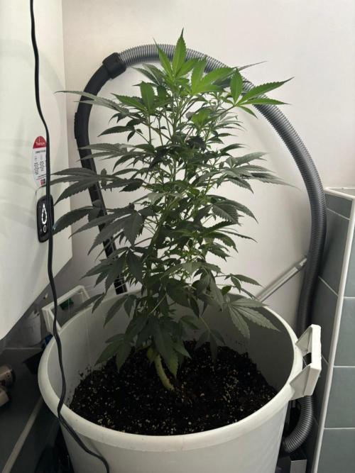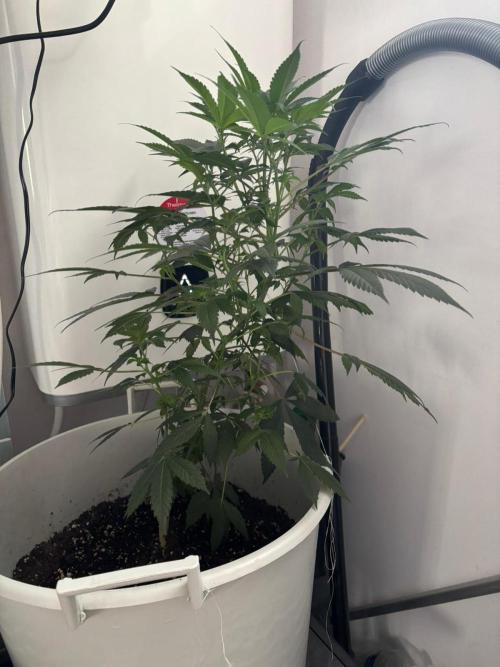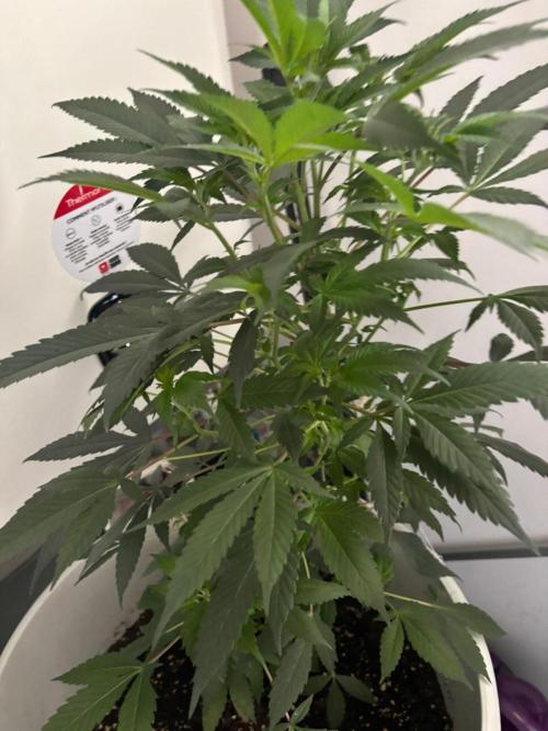 Pasmalstudios so its been a while since we updated. So much has happened and we learned so much. our initial homemade mix was way to draining (no surprise) we re-potted her in a new "starter" pot with soil, coco husk and perlite and got a nice light (phlizon ph-d6) that works a treat! she really grew but was still laggy. We ended up moving her and got her in a 10L pot. she handled that super well and so we added fishmix to her watering once a week and SHE EXPLODED. in 3 weeks she grew 15cm and outgrew her 10L pot. So we just re potted her in a 40L pot with an additional 20L of soil (so 30L of soil all together) from biobizz (their topmix). We're looking to really get her to bush out so were attempting some light training. We think 2-4 weeks more of veg and then we'll pop her lighting situation to flower. We'll see what we get! We've really gone through a journey with this.