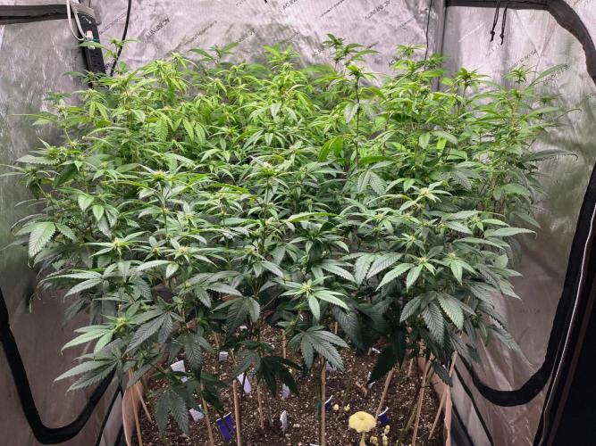 Embarrassed_Corgi_64 Wk 7 - Well they've finally shown sex and I have a total tally of 18 females and 21 males. Two short of what I was hoping for for females but whatever. I still have 18 chances to find a winner. Trying to give the males away to a breeder buddy, otherwise will dispose of them. Five plants never came back from the overwater/underwater fiasco and are also on their way to the compost. - On a shittier note, I have thrips. Lots of thrips. I did a heavy defol and thankfully the vast majority were on the males., so I stripped them down hardcore. The females not to much, I need to hang onto their leaves for when I top them and hopefully root the tops. Will be borrowing some pure crop from work to punish these fuckers. Probably going to leave right after this to go pick it up. - Fed everything especially the females with a bunch of stuff