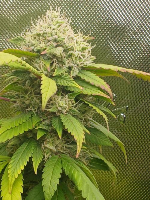 BlunthumbMD Spun 180⁰ to finish on my sun side for last week. She's not too stinky, buds are big, thick, and dense. Turning the humidity way down, no rain to worry about. 2 weeks max, then she'll be in the dark before the chop.