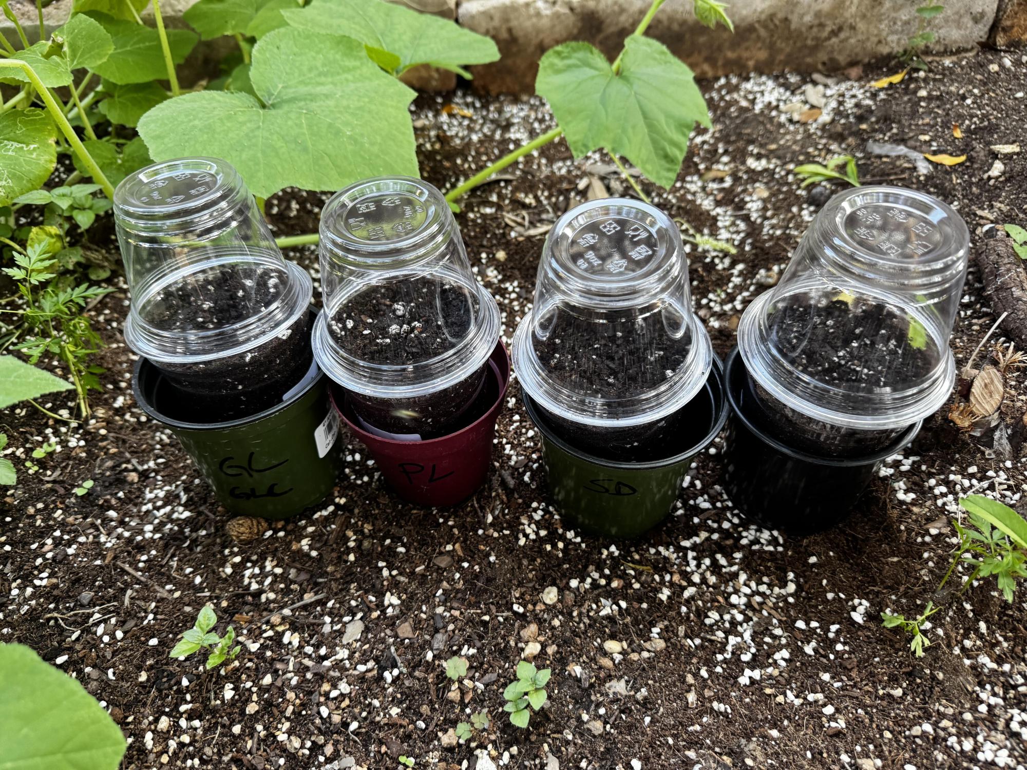 The little seedling popped through the top of the soul this morning, so I took the humidity down off. It’s in the garden getting the outdoor sun.