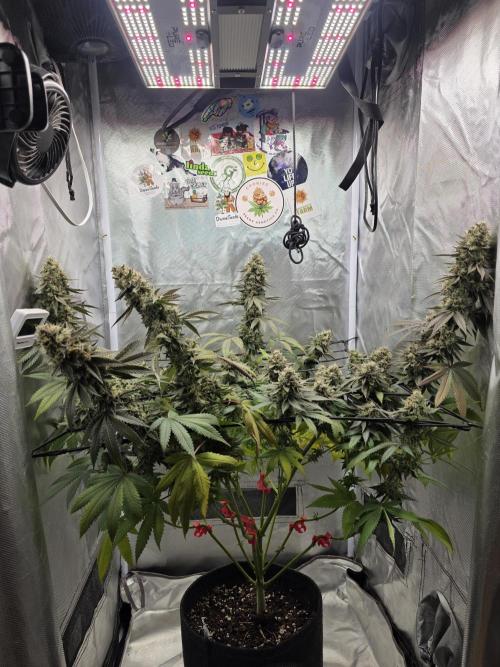 CheeRz It's week seven of flowering, and we are slowly approaching the home stretch. The smell in the tent is mindblowing. Unfortunately, the LCG isn't growing as well as the Purple Punch x Lemon Drizzle. The buds aren't fully mature yet. Let's hope for the best! ๐๐๐๐๐๐