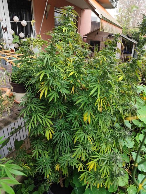 Tag 218: Die Power Flower fem. und die Special Kush #1 fem. bekommen seit Sonntag kein Wasser mehr. Hab heute wieder eine ganze Menge Laub weggenommen. Die Royal Medic fem. bekommt noch weiter ihren Cocktail, sie wird noch nicht geerntet, da ist einfach noch zu wenig dran.