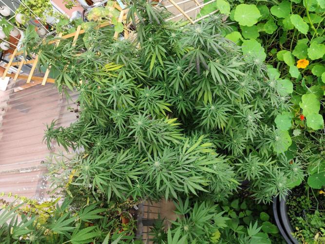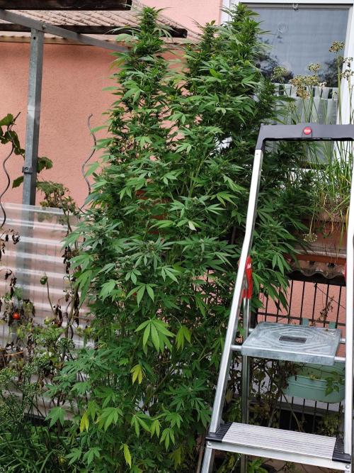 Tag 133: Die Power Flower fem. ist jetzt 170 cm, die Special Kush #1 fem. 170 cm und die Royal Medic fem. 145 cm hoch. Gestern haben die drei einen kurzen Regenguss abbekommen, war nicht schnell genug draussen. Heute ist das Wetter ideal, leicht bewölkt, 27°C und 45% Luftfeuchtigkeit. Es wird weiter 2x am Tag jeweils 1,5 Liter gegossen, den Schachtelhalmextrakt gibt's nur 1x alle 14 Tage.