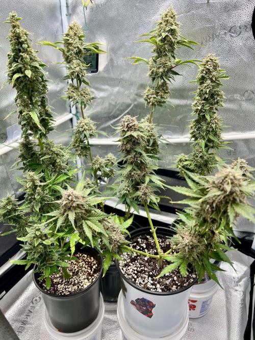 9/29 434AM. 4,3,2,1!!!!!!! Top of Apricot 1 cola, CA2 2 gallon 2 cola, 3 cola CA, 4 cola Triploid OG!!! All fit like a puzzle, this is a nice way to go, organized and optimized in the tent, takes some extra skill lots of fun doing it like this๐๐