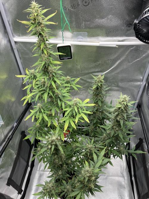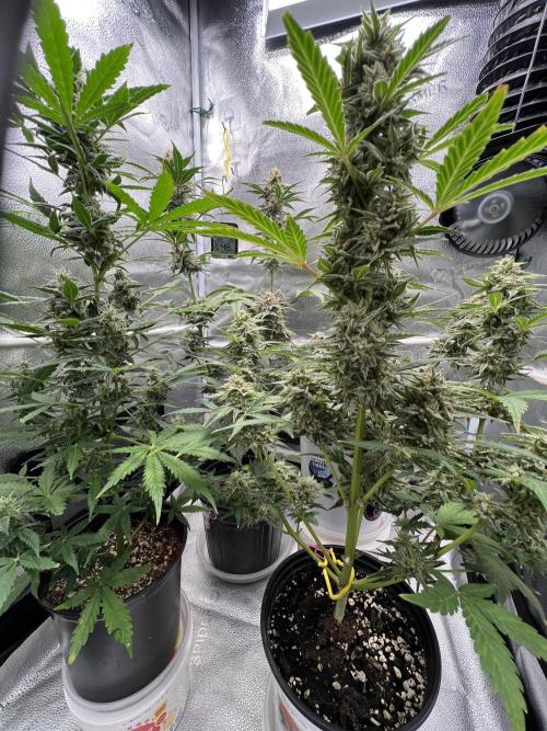 9/29 434AM. 4,3,2,1!!!!!!! Top of Apricot 1 cola, CA2 2 gallon 2 cola, 3 cola CA, 4 cola Triploid OG!!! All fit like a puzzle, this is a nice way to go, organized and optimized in the tent, takes some extra skill lots of fun doing it like this๐๐