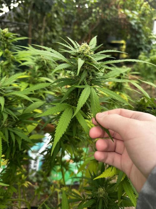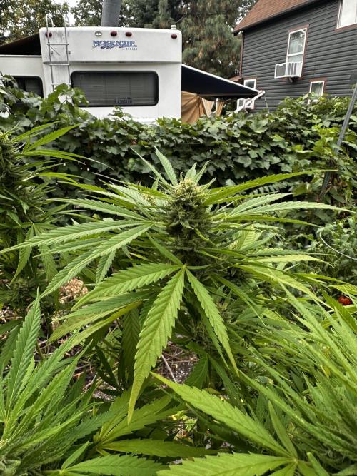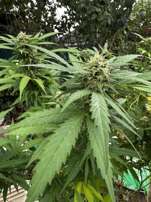 MonkeGotPower The fucked little auto is maturing first starting to get its orange hairs and the photos are growing good, they smell slightly but mostly after touching the buds, smelling nice and sweet, and earthy yet fruity gassy notes very nummy smelling, the big auto still has a few weeks but its fattening up nicely. The photos are growing perfectly fine but yknow the bugs but aye its whatever they are outdoors theres gonna be bugs