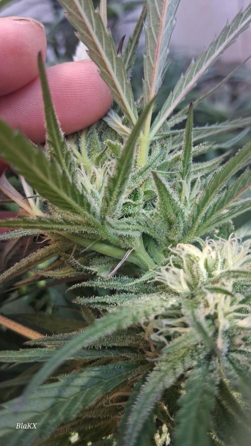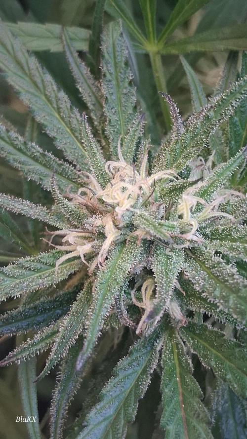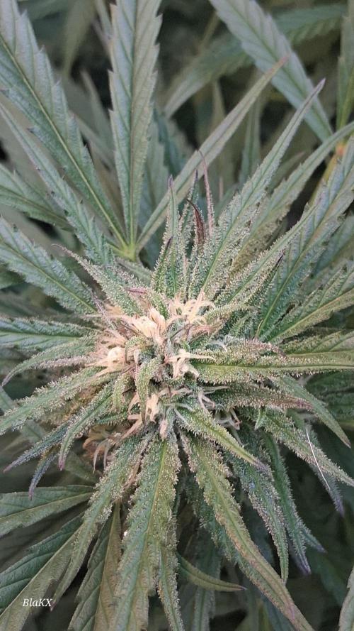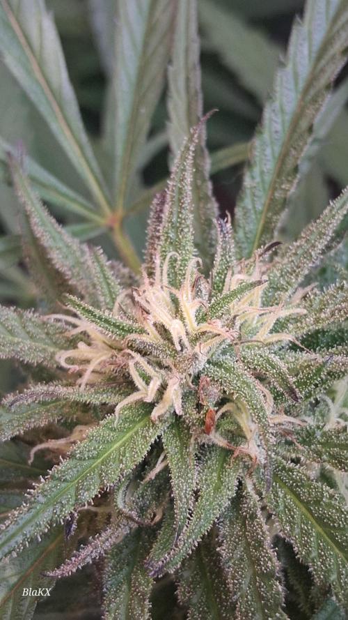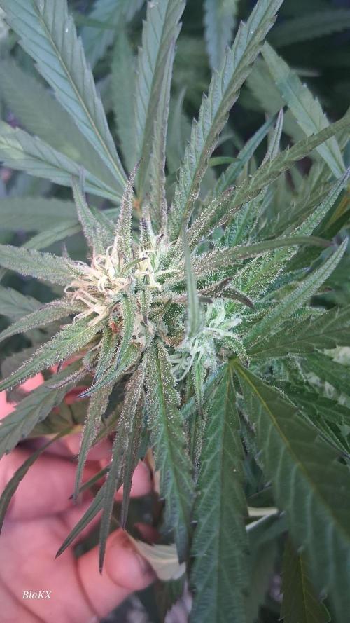 Trotz dem wenigen Sonnenschein beginnt sie mittlerweile Harz zu produzieren und Terpene zu produzieren was ein leckeres kush aroma schon zu riechen ist.