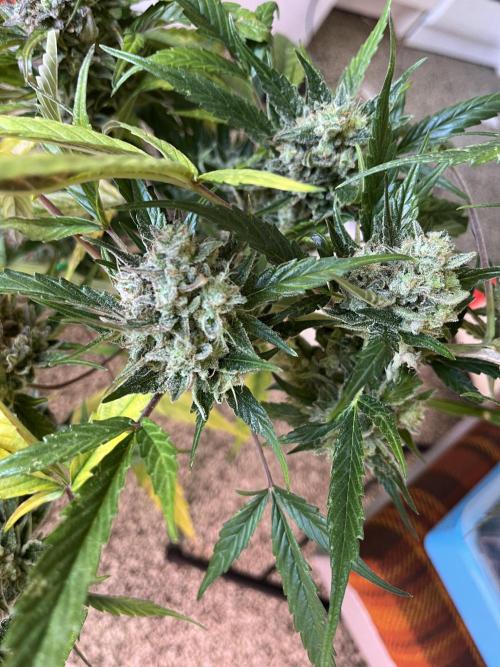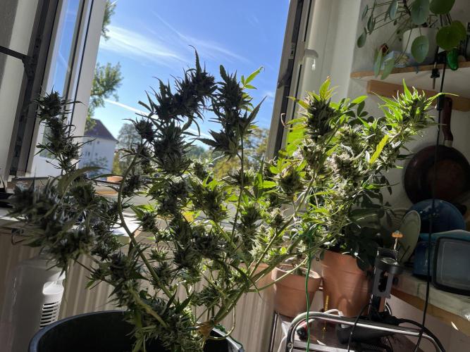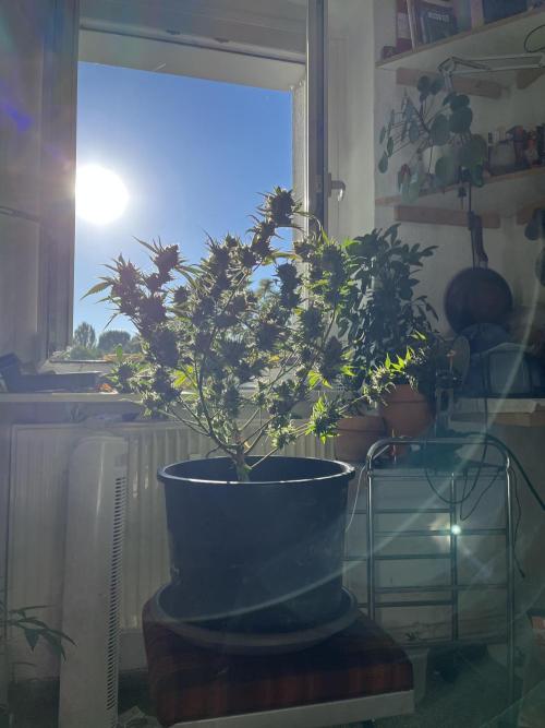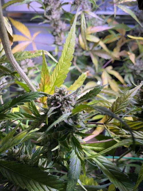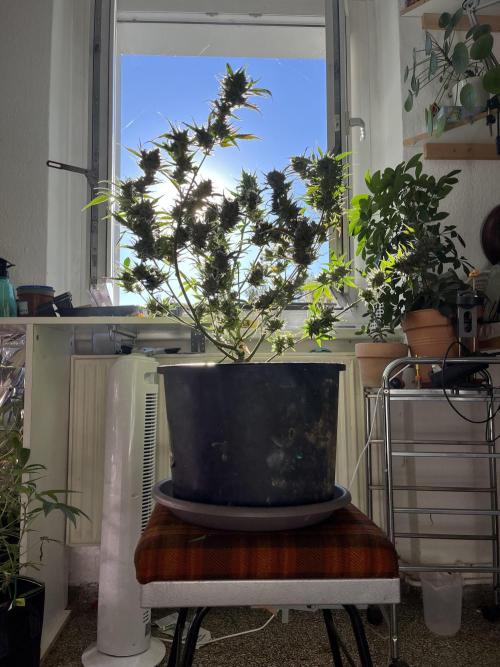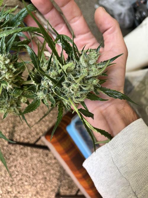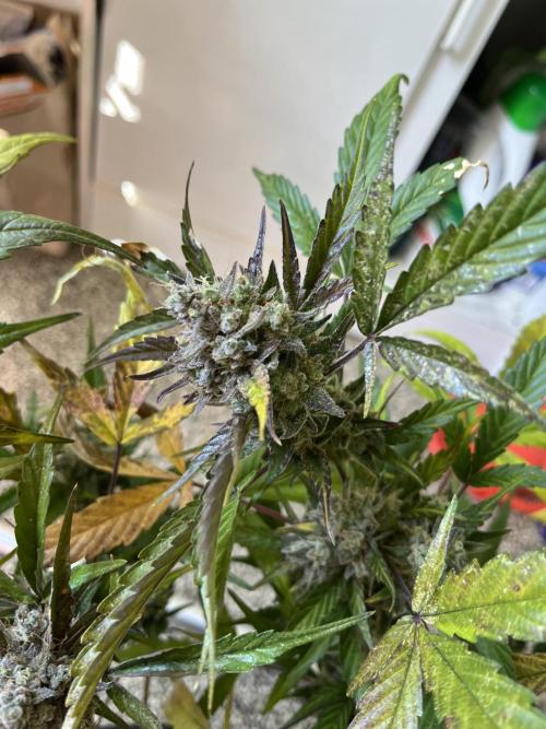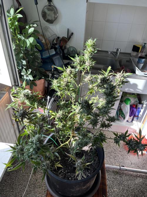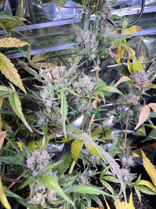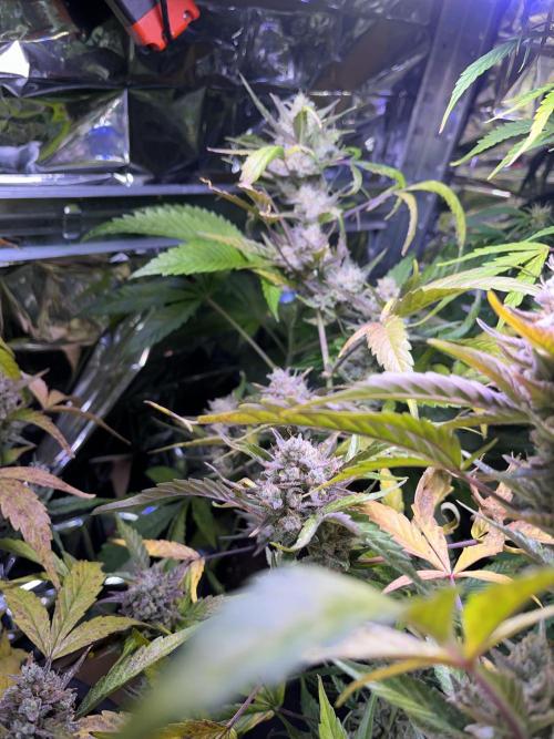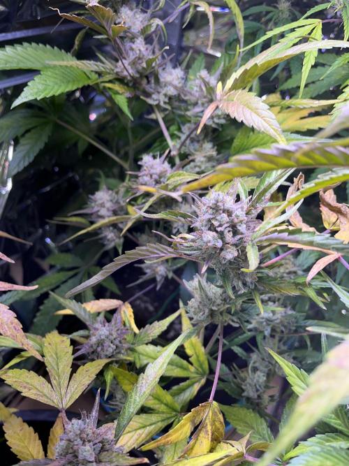 This grow had its ups and downs — slow start, some stress early on, and even a bit of bud rot near the end — but she still managed to pull through and finish strong. The plant ended up quite big and full of frosty buds, showing nice purple tones and a strong, pungent aroma with hints of berry and mint.