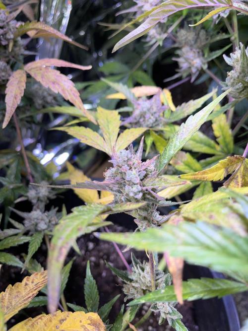 The smell is extremely strong, filling the whole space. She’s not quite as sticky anymore, but the purple tones showing through the frosty buds (thanks to colder temps) are a real highlight.