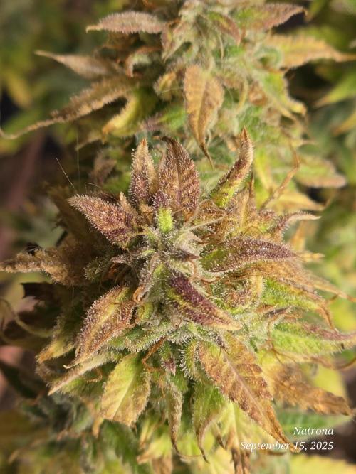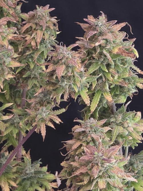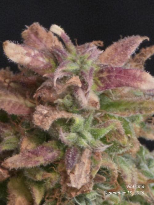 The foliar feeding helped her get back on her feet and she developed dense frosty buds that show beautiful pinks, plums (lilacs) and autumn colors.