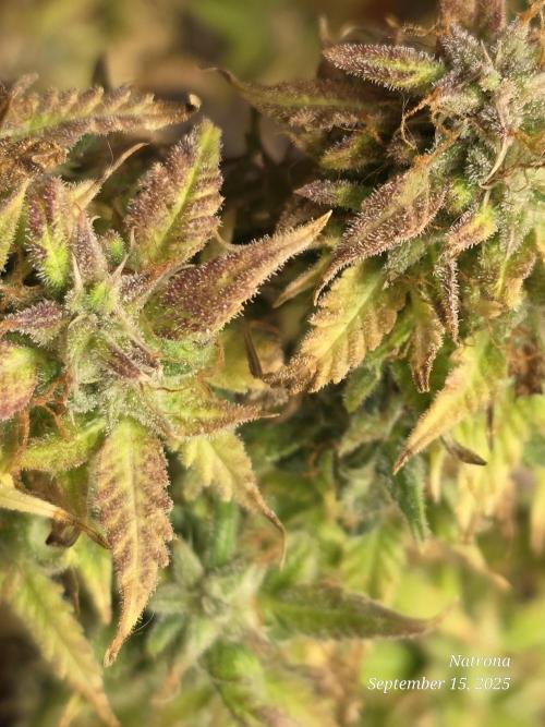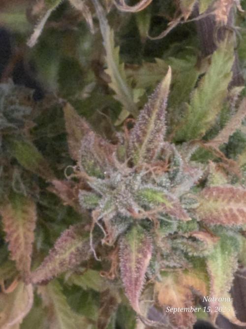 This week I watered once with Green Sensation & Cal mag. The trichomes are milky and amber in many places and she will be harvested soon.