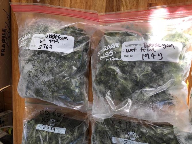MindFlowers68 I initially harvested two bags of wet trimmed for fresh frozen bubble hash, but then a week later I noticed there is some more right bud so I cut those off and get another 75 g wet. After my first two washes, I kind of got a little discouraged, so I'm taking a step back and take him to decide what to do with this probably edibles.