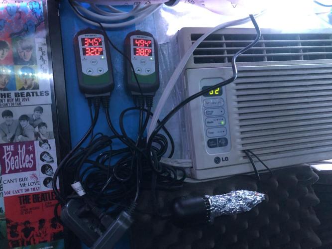 MindFlowers68 This was the final week. I had no choice to harvest early because pm was starting to settle on a lot of stuff in my garden. The UV light worked for like a day or two and it came back. It's just not worth it. It turned a lot of the buds hairs brown and the leaves did suffer a little damage. Part of that was the peroxide solution. I mixed a little too strong, and it didn't seem like it hurt the plants, but after a few days, they showed the damage. It just seem to burn the leaves a little not really the bud so that's good. There was three days of rain coming, so I wanted to get it cut down.I didn't intend on harvesting so early, and I have no place to dry this because other plants drying so I was forced into freezing it. I cut down branches and wet trimmed it into a bin and ran to the freezer every 10 minutes to get it frozen right away. I maybe could've dried it and had some decent flower but I figured this would be a good opportunity to learn about making bubble hash. I decided I wanted a stainless steel mixing vessel and found this beer brewer for a good price. I think it's gonna be solid. It has a nice drain at the bottom. Then I bought some 5 gallon buckets for spacers for my 5 gallon bubble bags I use the heat gun to peel the stickers off and to heat the bottoms up to make it a little easier to cut them out with the utility knife. I used the heat gun again to soften the edges a little bit so I don't damage my bags. I can't do my washes until I'm done trimming my flowers, but I got a 2 Inkbird temperature controllers to bring my studio down to bubble hash temperatures with my ac unit. I could wait a little longer until it gets colder but I'm not sure how cold it's really gonna get and I wanna get this done soon as I can. I'm gonna have to try it without a freeze dryer so that should be fun and I'm not going to micro plane it at all costs. I got 25 µm screens for drying that I will use a towel to wear most of the moisture out then see if it on to some parchment and I should be able to get my studio really cold and dry to get it dried relatively quickly. I'm seeing it recommended to be 30 to 40% humidity and 50° or so for about a week and it should be dry enough to press some rosin. I'm gonna try to separate out the full melt hash, but honestly I think I'm just gonna get a wide spectrum pool on this hash and just press it into rosin to make it easier to deal with. I kind of was trying to find the cheapest bags it's still decent and wasn't paying attention when I bought it really cause there's no 45 µm and my set and I'm saying that to be the lowest recommended the pool but also seeing a lot of people pulling some nice 25 µm so I think with my early harvest I might have some smaller truck head so I might not be a bad thing to have that bag as my lowest. I'm going to catch everything under 160 to 25.