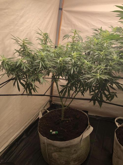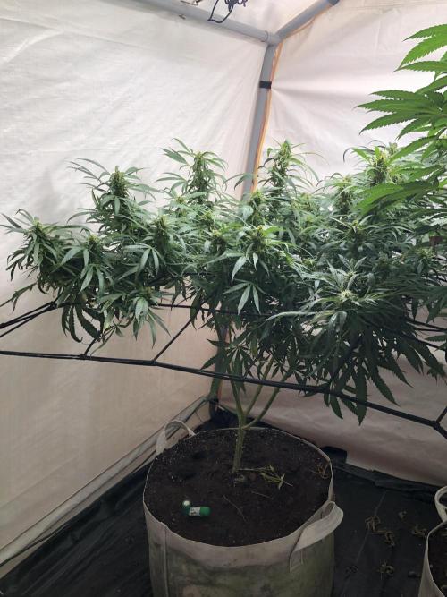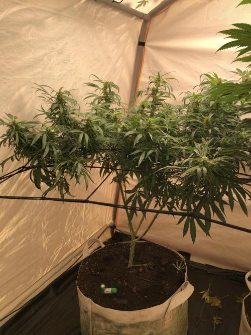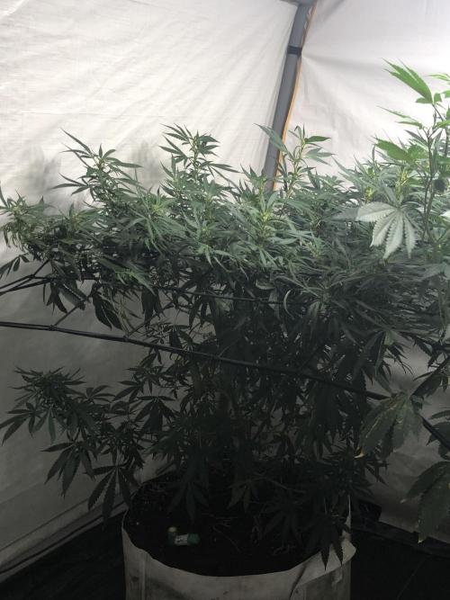 MindFlowers68 Shes still just hanging out vegging along slowly. The net is looking mostly filled but still space to run branches if needed as they fill it. Got a feeding if compost tea once this week. Temps have dropped and humidity is in a more acceptable range and the load on the plants has been dropped for the time being so not much input needed on my part. I need to clean up the lowers a bit and think about if I'm going to bother trying to get a bigger pot around the roots somehow. Also at the end of the week i looks like shes going into flower somehow. I'm going to bump the light up and try to redirect her back into veg asap. we had two vey cloudy days and her being offset to the light must have triggered her.