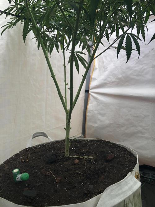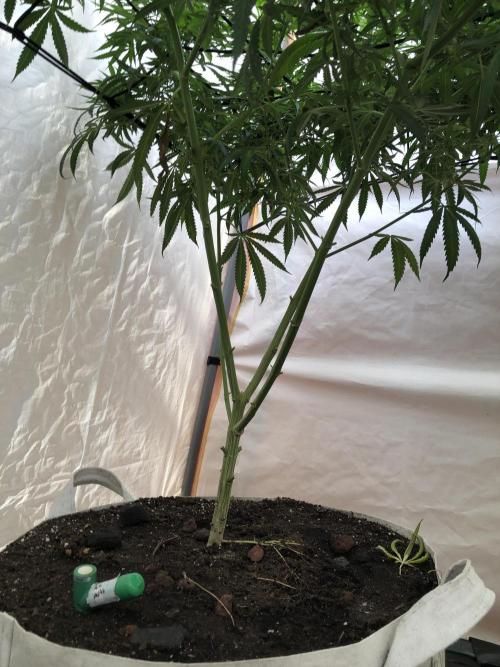 MindFlowers68 Still in the 1 gallon pot but I will be transplanting this week. I had to set up my other tent to make space for my other plants. I'm hoping I can somehow keep this in veg while my other plants flower then have it ready to go after I harvest the others. I should be able to get some clones this week. Watered 2 times this week the first only water the second my cal mag and kelp solution.