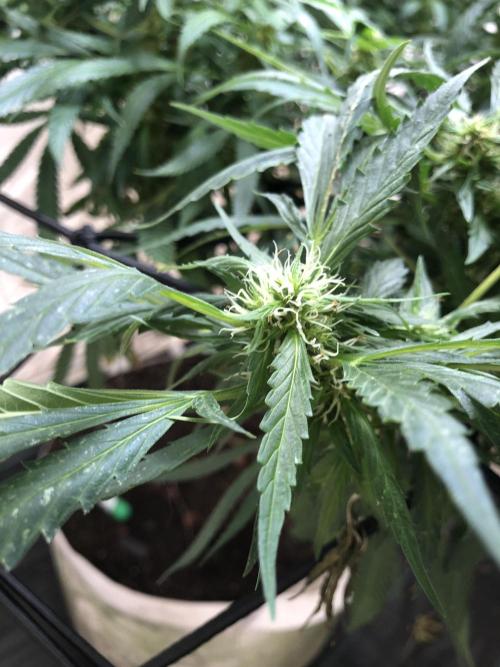 MindFlowers68 I still have a light overhead was going from 6am to 9pm to keep them in veg, but she looks like shes more than preflowering idk. So i bumped the light to 5am to 10 and she seems to not be stacking buds yet but the nodes are super close. I was able to take the pots from my autos and use them to transplant her from 7 gallon to 30.