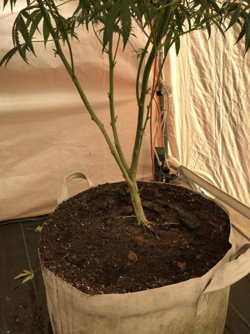 MindFlowers68 Everything going smooth this week. Not growing that fast but just stalling her anyway a few more weeks in veg to stager my flowering. Main thing was getting the pots from the auto flowers and transplanting her into one of the bumping it up from 7 gallons to 30 gallons. Got two waterings one with compost tea and other kelp and cal mag.