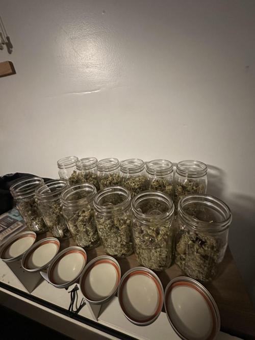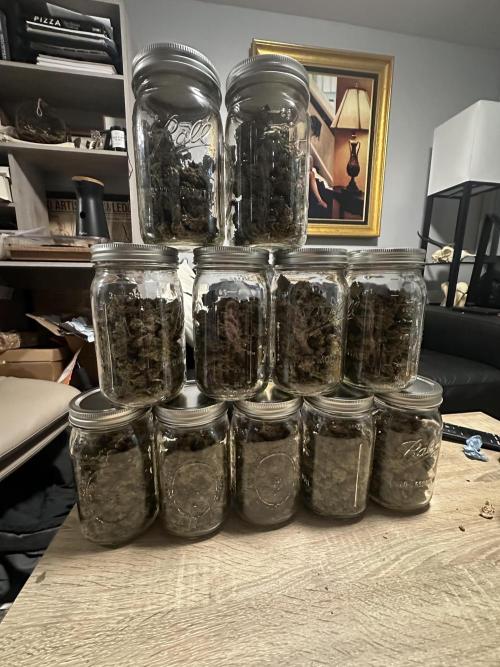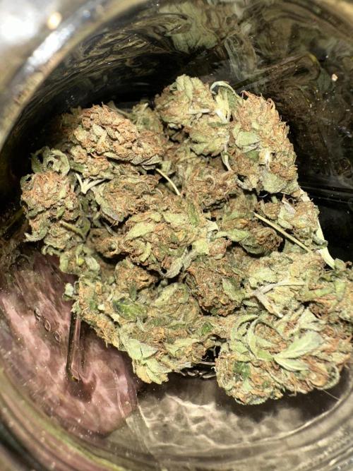 BuddyHolly Outdoor blue dream from Barney’s farm. I lost at least 4oz, a good sized branch collapsed under the weight. Still made out with a decent haul. 463 grams, or just over a pound. Been curing for 2 weeks now. Has a Strong old school smell, starting to develop an almost sweet berry-like aroma