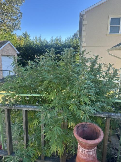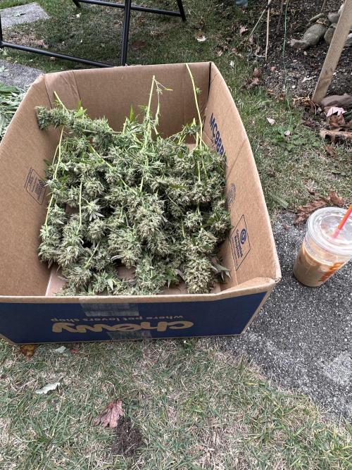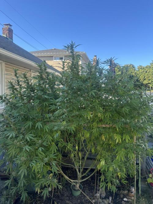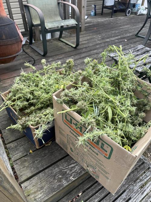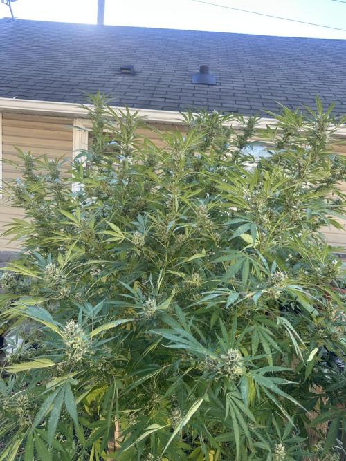 BuddyHolly In the process of harvesting Pineapple Express in hydro/tent. Photos are about an ounce of both dried and (4oz)wet buds for comparison 6 clones topped and transplanted, ready to be moved into flower tent once it’s cleaned this weekend. Photos of outdoor blue dream. Approx 5 ft wide 6 ft tall. Should start flowering by the end of the month.
