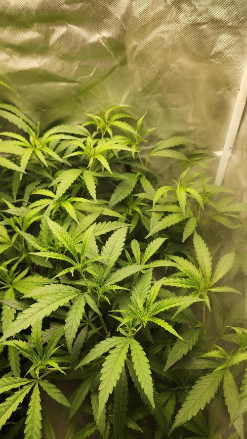 GREENPHOENIX6262 Coming up on week 5 (Veg) she has been rocking well, Light nute feed and added a humidifier temps 84 Humidity 83 - looking to transplant this mother very soon