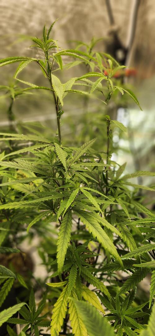 GREENPHOENIX6262 Coming up on week 5 (Veg) she has been rocking well, Light nute feed and added a humidifier temps 84 Humidity 83 - looking to transplant this mother very soon