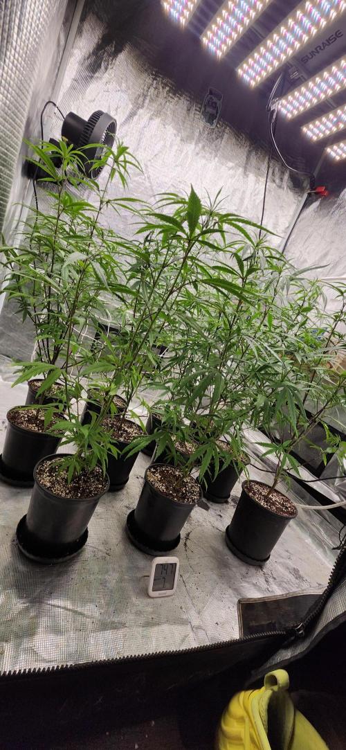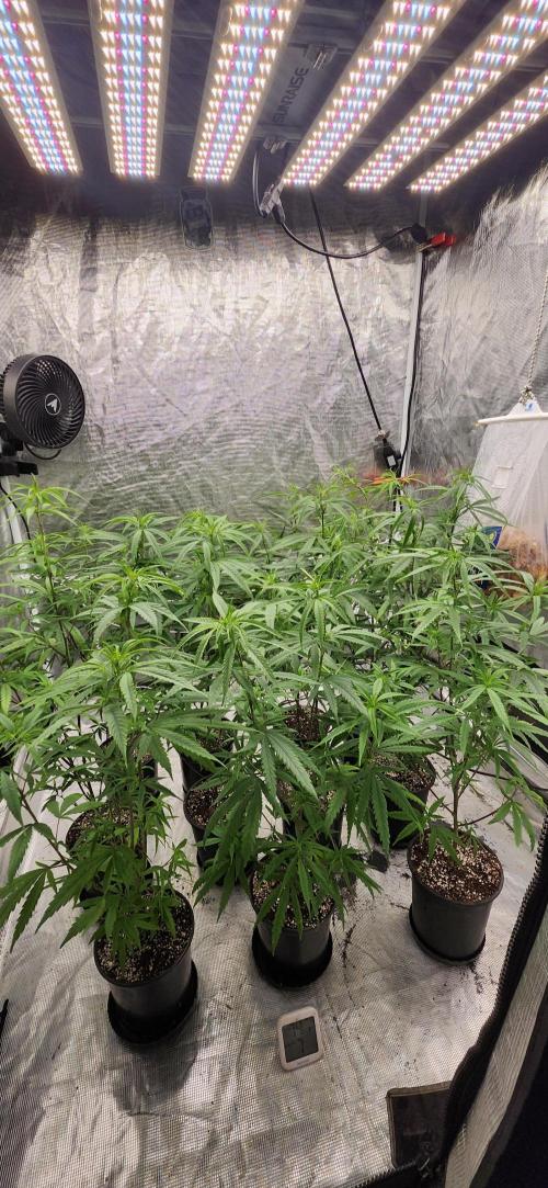 GREENPHOENIX6262 10/19 - Mother has been discarded due to bad PH burn - 17 clones in full veg - split between 2 tents (2x2 - 4x4) running drip lines in the 4x4 - 5 gallon res - 4x4 running a Sunraise QB3000 - 2x2 running Marshydro TS1500 - High humidity during lights on - 0 humidity durning lights off