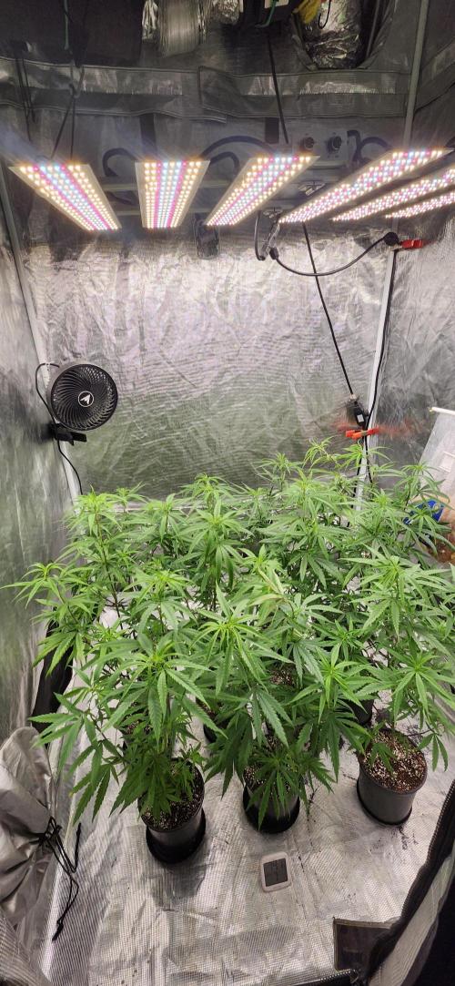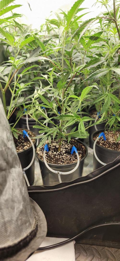 GREENPHOENIX6262 11/03 - 2x2 (6 clones) 4x4 (11 clones) - 4x4 trimmed and ready for flip this week - 2x2 being trimmed this week and flipped same time as the 4x4 - Only clean water and carbo flush feeds for this week. Drip line emitter added to the 2x2 with a 5 gallon res - each pot has 2 lines.