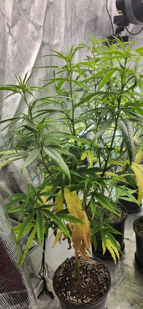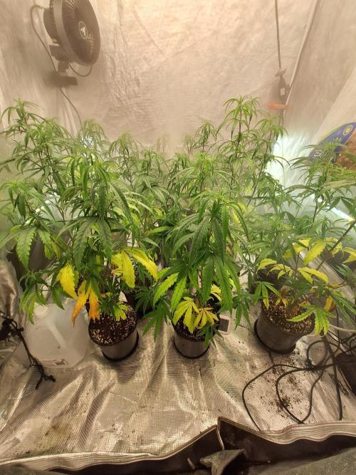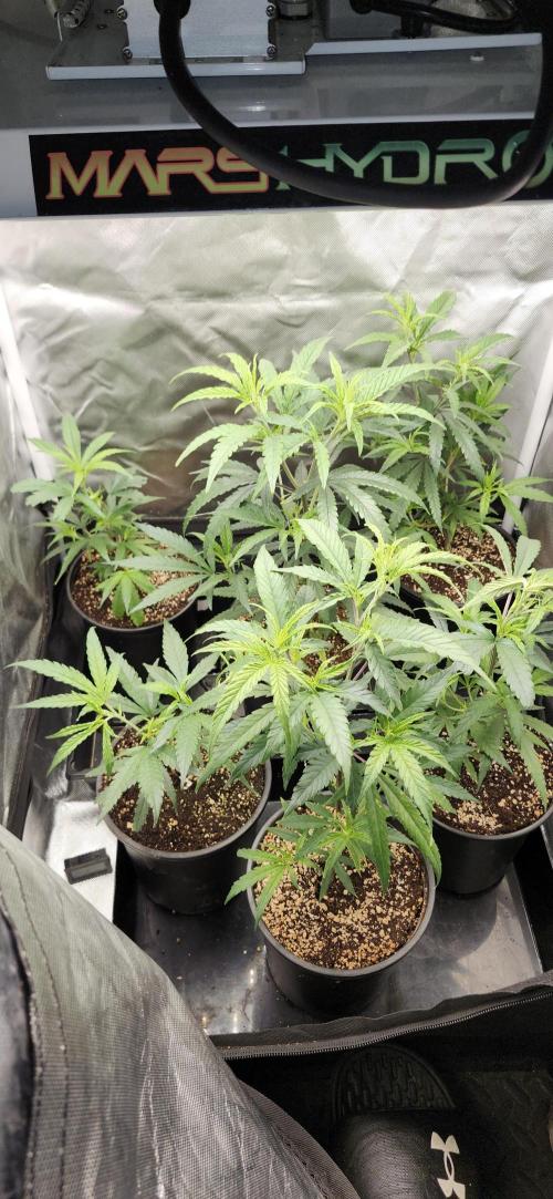 GREENPHOENIX6262 10/19 - Mother has been discarded due to bad PH burn - 17 clones in full veg - split between 2 tents (2x2 - 4x4) running drip lines in the 4x4 - 5 gallon res - 4x4 running a Sunraise QB3000 - 2x2 running Marshydro TS1500 - High humidity during lights on - 0 humidity durning lights off