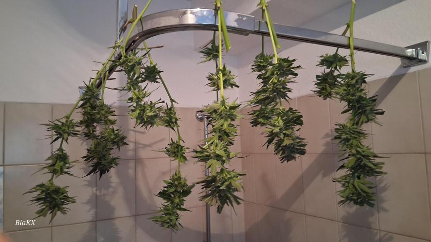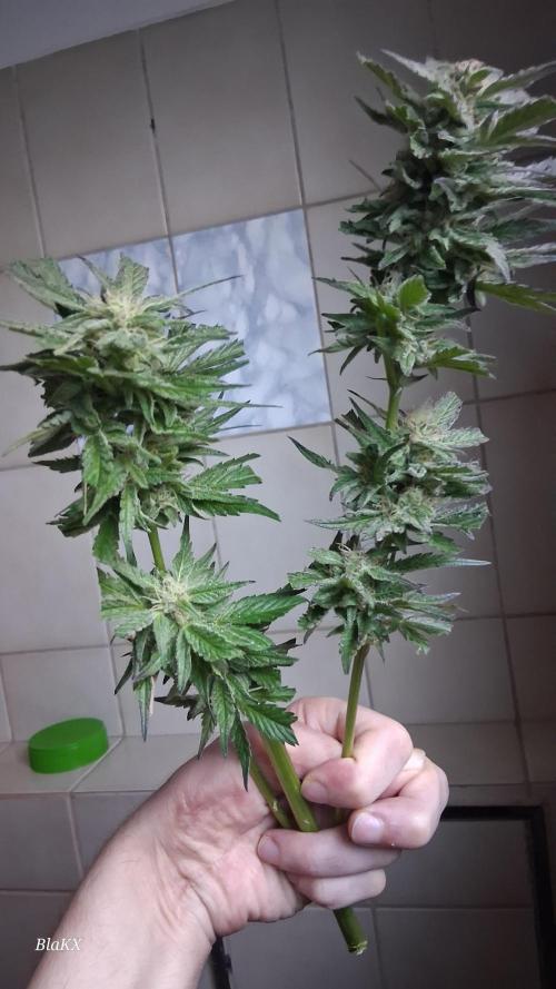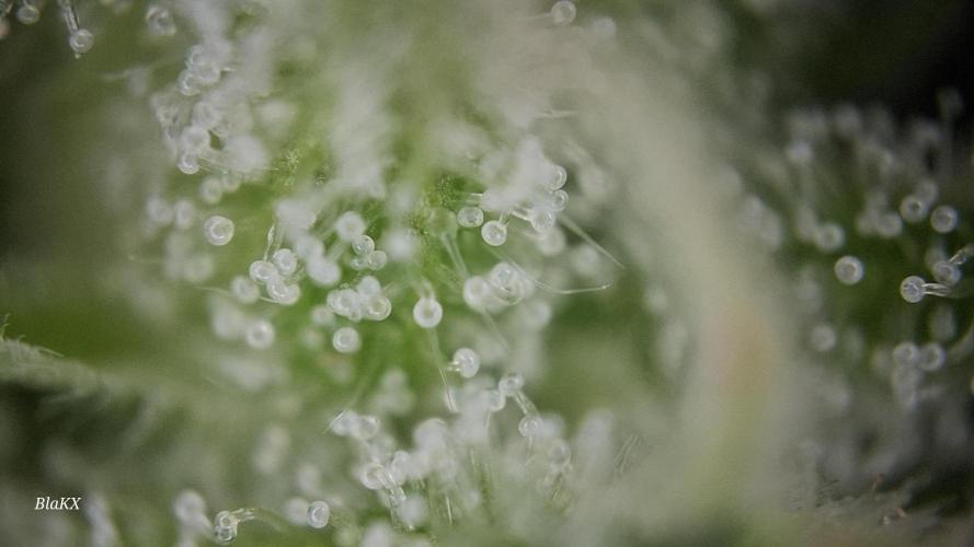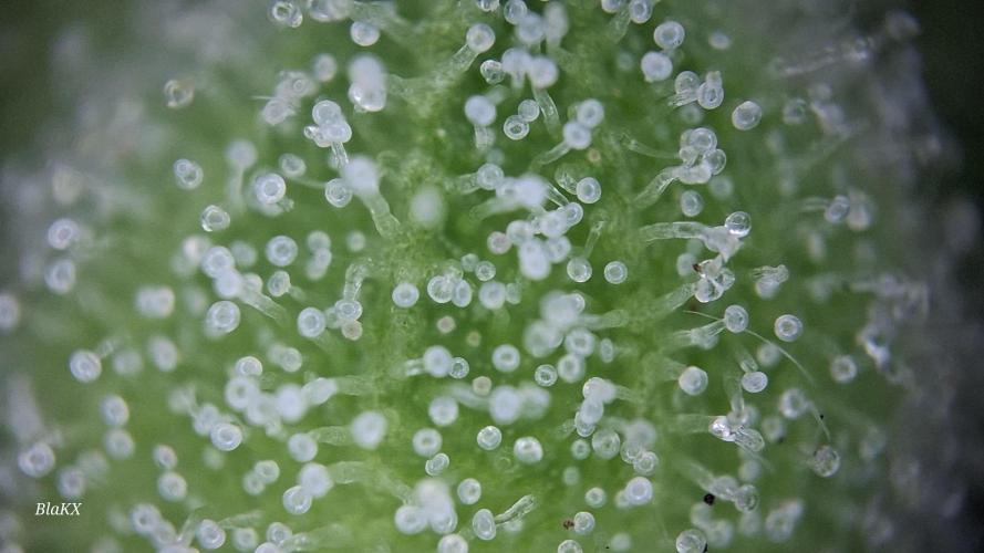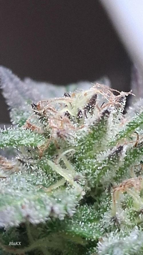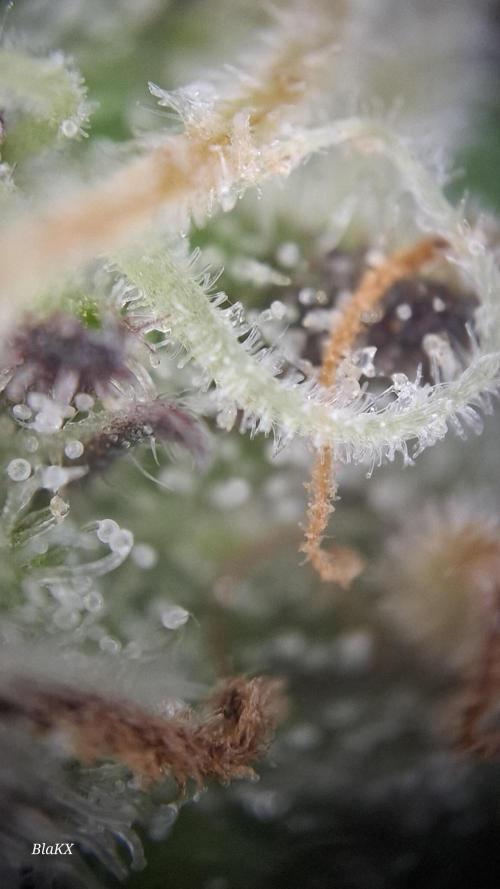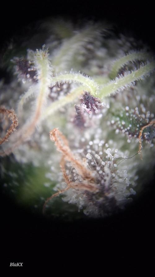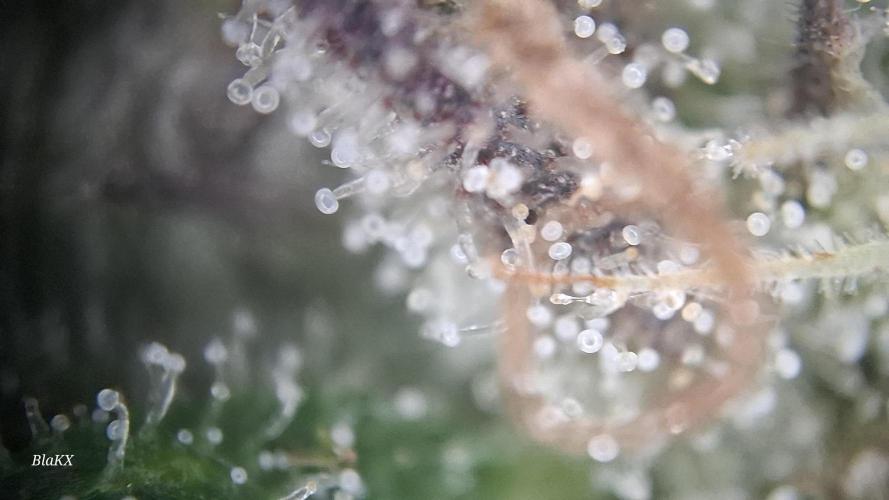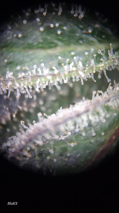 Bin etwas angeschlagen gesundheitlich und werde sobald es mir besser geht und die Blüten trocken und bearbeitet sind bessere Bilder und nochmals Mikroskop Bilder der Trichomen hochladen da ich die Pflanze in Teilen ganz Trockene und so nix über das Gewicht sagen(schätze es nass Ergebniss aus erfahrung)und das bisschen Bud rot bei so einem Wochen langen drecks wetter ist bemerkenswert ebenso das NULL probleme mit Schädlingen bestand.