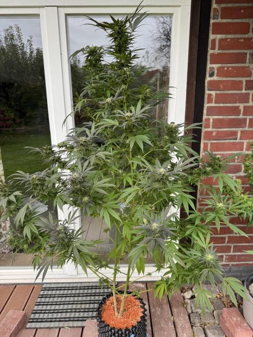 Sejanus21 Both plants are progressing well into flowering with visible bud development. Team Earth (Airpot):Day 121, 149cm height (+9cm from previous week) Natural-topping structure clearly visible with multiple main stems Dense canopy development, good bud site formation Maintaining size advantage consistently Team Lechuza: Day 104, 125cm height (+4cm from previous week) Wind damage visible - smaller plants are more susceptible to environmental stress Slower growth rate this week compared to Team Earth Still showing healthy bud development despite weather challenges The size gap has actually increased slightly to 24cm, suggesting Team Earth's larger root system and natural genetics are providing better resilience during the flowering stretch. Your strategy of using rainwater during sunny periods makes sense to prevent nutrient burn. Team Lechuza's "zerzaust" appearance from wind exposure highlights one advantage of the larger, more established Team Earth plant - better structural stability. The 17-day age difference plus the natural topping genetics are creating a cumulative advantage that's becoming more pronounced as flowering progresses. Both systems are performing well within their respective capacities. Team Earth is maximizing its genetic and size advantages, while Team Lechuza continues to demonstrate impressive efficiency for its smaller volume.
