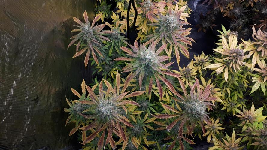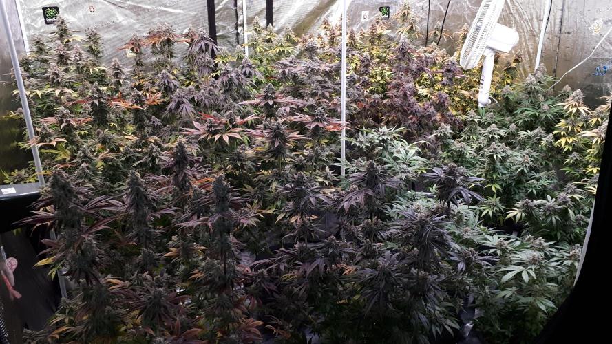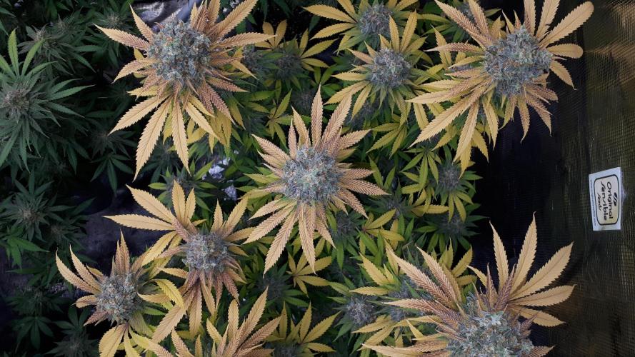 DID A MAJOR DEFOLIATION TO HELP CONTROL THE HUMIDITY AND MORE LIGHT PENETRATION. WHEN YOU REMOVE AS MUCH LEAF AS I DO, YOU GET WAYYY MORE BUDS BUT THEY ARE SMALLER BUT IT HELPS LOWER THE HUMIDITY VERY WELL