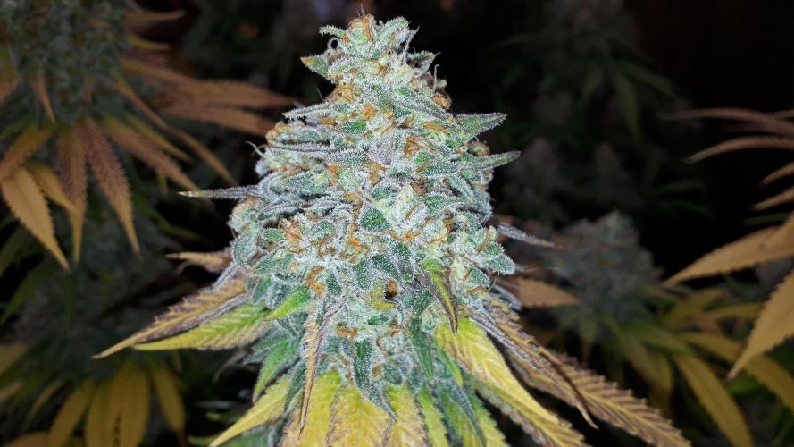 This plant was very nice looking with awesome colors and nice frosty rock hard buds. It is very sweet n earthy and kinda tastes soily. Very very strong and potent so I smoke it at night. It makes me extremely relaxed and tired and is awesome for sleep