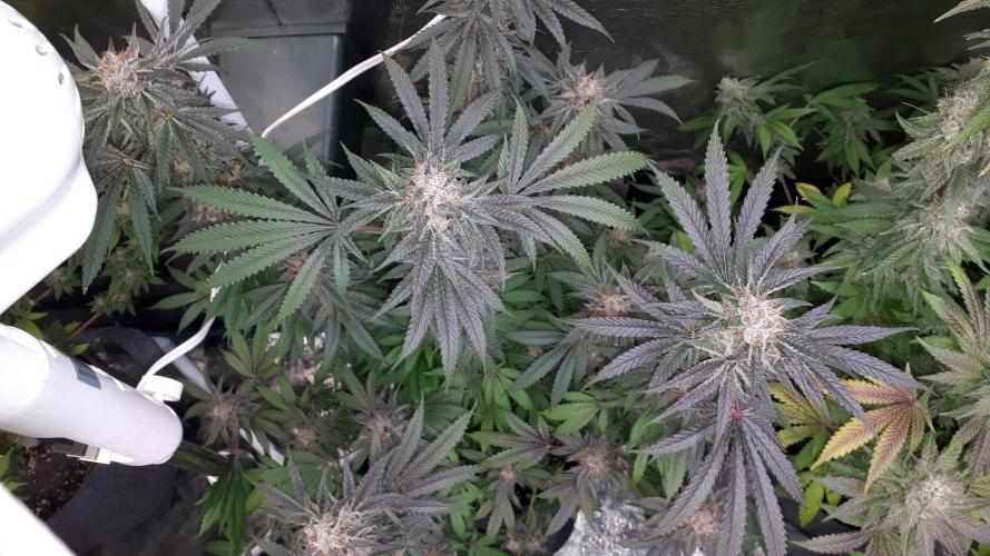 Rock_n_Roll_Randy Everything is in the 8x8 mars hydro tent with mars hydro FC-E6500, FC4800 and a TS3000 DID A MINOR DEFOLIATION TO LET LIGHT HIT THE BRANCHES AND IM GOING TO LET THEM FILL IN AND PROBABLY WONT DEFOLIATE ANYMORE UNLESS ITS NEEDED TO HELP CONTROL THE HUMIDITY AND MORE LIGHT PENETRATION. WHEN YOU REMOVE AS MUCH LEAF AS I DO, YOU GET WAYYY MORE BUDS BUT THEY ARE SMALLER BUT IT HELPS LOWER THE HUMIDITY VERY WELL LIGHTS WERE SWITCHED TO 12/12 ON JULY 29 !!!!!!!!!!CAUTION TO GROWERS!!!!!!!!! BEWARE OF THE TENT CONTROLLERS CALLED THE " TENT X AND HYDRO X BOTH ARE MADE BY TROLMASTER" I WON IT IN A CONTEST ON GROW DIARIES AND IT SAYS IT WORKS WITH ALL LIGHTS BUT THEY DONT MENTION THAT YOU HAVE TO CUT OFF YOUR LIGHTS DIMMER SWITCH AND WIRE IT TO THEIR CONTROLLER WHICH WILL VOID YOUR WARRANTY. THE PIECE OF CRAP COSTS 0-500, THEN YOU MUST BUY ALL THESE OTHER SENSORS AND PLUG INS THAT COST 0 EACH OR MORE..... I CALL IT A 0 HYGROMETER BECAUSE ALL IT DOES IT TELL YOU THE TEMP AND HUMIDITY AND YOU MUST BUY ALL THESE OTHER SENSORS AND PLUG INS TO MAKE ANYTHING ELSE WORK... LIKE EXHAUST FANS, OSCILLATING FANS, HUMIDIFIERS, DEHUMIDIFIERS ETC. DONT WASTE YOUR MONEY BECAUSE I GUARANTEE YOU WILL BE PISSED OFF.... IM PISSED OFF WITH THIS CRAP AND IT WAS FREE FROM THEIR CONTEST... NO LIGHT OR ANYTHING IS COMPATIBLE WITH IT UNLESS YOU BUY MORE SENSORS AND PLUG INS.. SO ********BEWARE OF THE TENT X AND THE HYDRO X CONTROLLER**** ITS THE BIGGEST WASTE OF MONEY FOR GROWING EQUIPMENT. AND I WOULD STAY AWAY FROM ALL THEIR EXTREMELY OVERPRICED PRODUCTS
