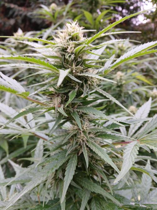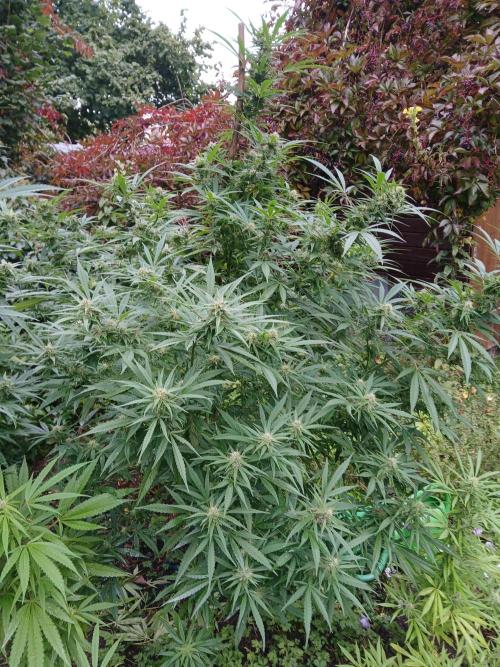 Caertner Nr 2 wurde untenrum stark entlaubt, der Rest nur leich entlaubt um die Durchhlüftung zu verbessern. Big Moma ist jetzt gut 220cm. Ist für die WhiteICE schon echt gross. Kompaktes Wachstum, kurze Nodien, typisch Indica. Dafür aber schmale Blätter wie eine Sativa sind für die Durchlüftung schon nicht verkehrt.