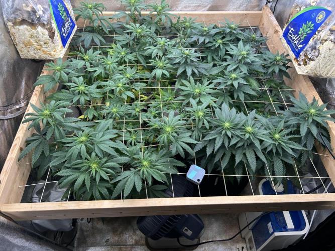 gdogfunk Finally harvested and got her in the flower tent this week. Just finished the last week of veg and flipped the timer to 12-12 today. She’s looking great for the scrog!
