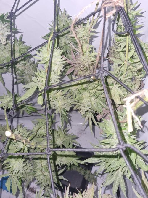 Had to harest early because I found some mold I think the reason was that my light fell down on one plant on Flower Week 5 so the plant was weak and infected the other ones. I throw away about 20g plant material with mold in the whole tent.