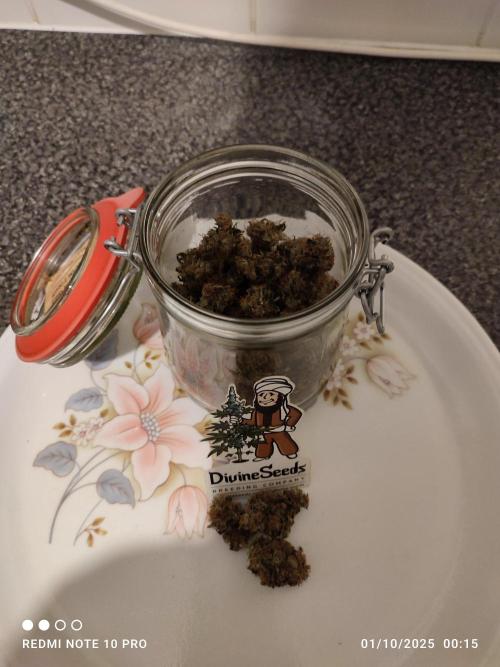 Nofeckingclue79 I have harvested this planet but there was a problem one of my six inch fans stopped working so two bud stems had two small peach fuzz spot of white mould. So I chopped half the planet off with garden secateurs and disposed of straight away, and after inspecting the over half of the plant finding no evidence of mould I washed with warm water. It is now in quarantine drying in my shed. That was the reason I haven't taken pictures in case my shed gets broken into 😂 so until next time ✌️ out my fellow Growmies and all going well I should have a very small amount of weed for dry weight and smoke review