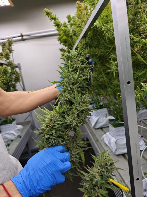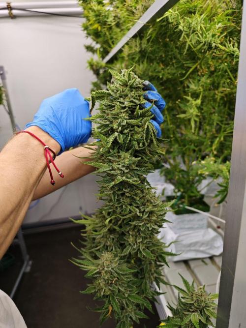 IceGenetics HARVEST Astral OG! On day 105, the plants were ready, and we started harvesting. We harvested everything. The plants reached the desired condition. After drying for 10 days, we calculated the average weight over 5 days. Due to the dense planting, the dry weight was ~950 g per square meter.