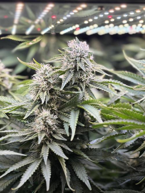 SmokinTees420 This plant is starting to grow some fat buds! They are super close to the light so having some burn issues. Can’t wait to see the yield this one!