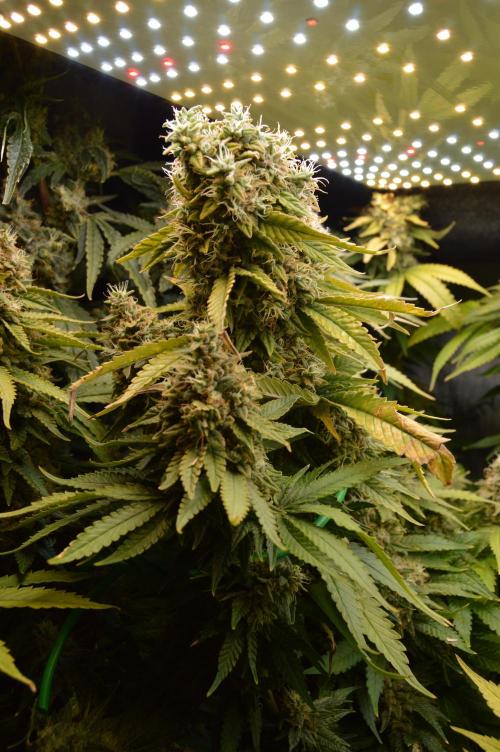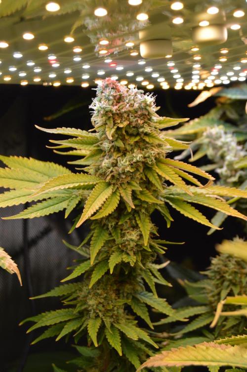 SmokinTees420 This plant is starting to grow some fat buds! They are super close to the light so having some burn issues. Can’t wait to see the yield this one!