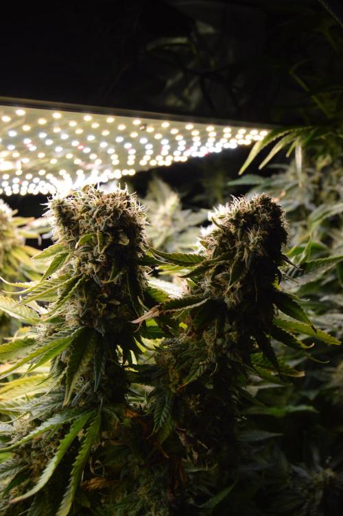 SmokinTees420 Week 9 started on 10/17. Most trichomes at the top are now milky and Amber. 1-2 weeks left before harvest.
